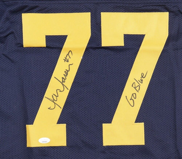 Custom on-field style jersey. Everything is sewn on, size Adult XL. Hand-signed by Jon Jansen (Washington Redskins, Detroit Lions).The lot / autograph(s) includes an official James Spence Authentication (JSA) hologram for authenticity purposes. The signing of this item was witnessed by JSA.Authentication: JSA Hologram
