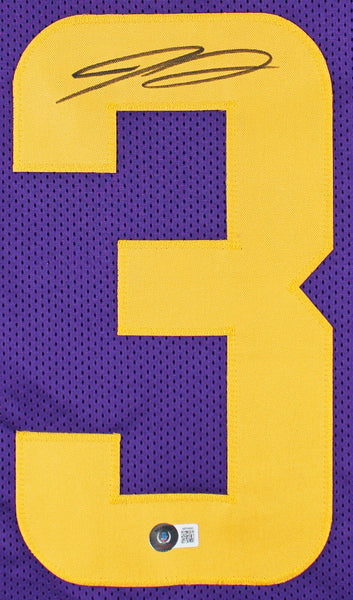 This Autographed Purple Color Rush Pro Style Jersey has been Personally Signed by Jordan Addison of the Minnesota Vikings. This item is 100% Authentic to include a hologram by Beckett Authentication Services. This item will come with an affixed Beckett Authentication Services (BAS) authentication sticker, which includes a scannable QR code to verify authenticity. Please note that Beckett no longer provides serial-numbered COA cards, and the attached BAS sticker will serve as the complete authentication for this item. This is a BAS Witnessed Protection Program item which means a Beckett Authentication Service representative was present when this item was being signed. We conducted an autograph signing with Jordan Addison where multiples of the same item were signed. While the photographs are representative of this item, the size, placement and strength of the signature may vary. Each item is hand signed, therefore, each autograph is unique. This item can be verified through BAS Witnessed. This is a X-Large sized, non-branded, custom-stitched Jersey.