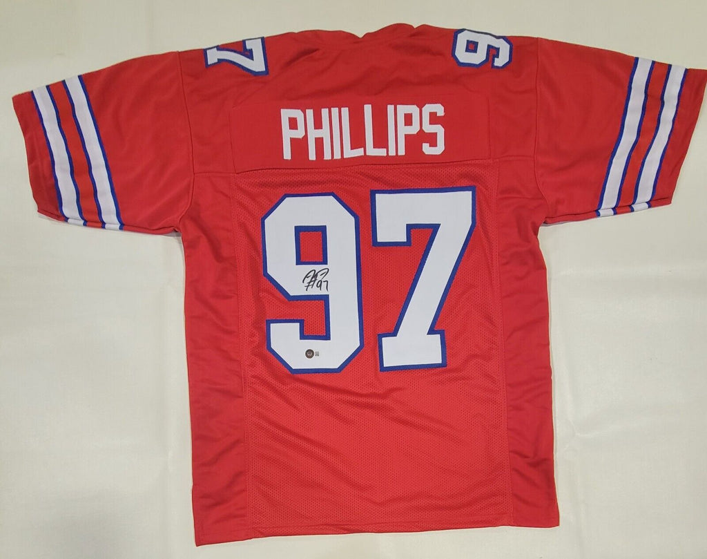 JORDAN PHILLIPS AUTOGRAPHED SIGNED PRO STYLE CUSTOM JERSEYSIZE XLBECKETT WITNESSED QR CODE HOLOGRAM COATHIS MEANS THE JERSEY WAS SIGNED WITH A BECKETT REPRESENTATIVE PRESENT SO YOU CAN BE 100% CERTAIN ITS THE REAL THING.