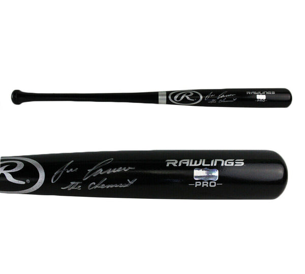 An Oakland A's Rawlings Big Stick Black MLB Bat hand signed by Jose Canseco. The item and signature are in excellent condition. In addition to signing his name, Jose also inscribed "The Chemist" on the item. Jose is a 6xAll-Star (1986,1988-1990,1992,1999). Jose 2xWorld Series champion (1989,2000). Jose a AL MVP (1988). Jose is All-Rookie of the Year (1986). AUTHENTICATION: The item is accompanied by a Certificate of Authenticity - Serial Numbered and Databased Hologram - Picture of Jose from the signing
