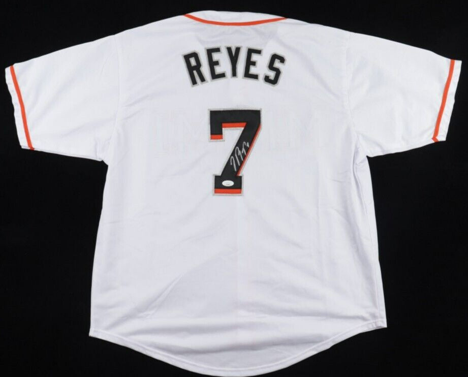 Custom on-field style jersey. Everything is sewn on, size Adult XL. Hand-signed and inscribed by Jose Reyes.The autograph includes an official James Spence Authentication (JSA) hologram and matching COA for authenticity purposes.Authentication: JSA COA Custom on-field style jerseys are a more affordable option for autograph seekers. These jerseys do not have any brand name or tags and are made in the Philippines. They feature stitched on names and numbers and are made to look very similar to the on-field jerseys that the players wear. These custom jerseys are very commonly used in the memorabilia industry.