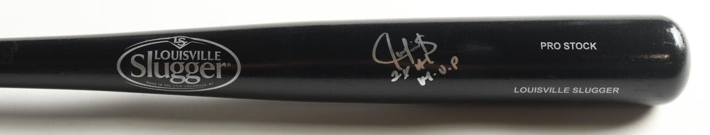 This autographed baseball bat has been personally hand-signed by Juan Gonzalez ("2xA. L. MVP" inscription) of the Texas Rangers. This autograph is certified by Schwartz Sports. It comes with the numbered hologram for authenticity purposes.