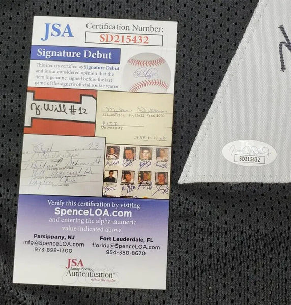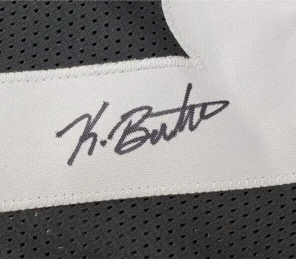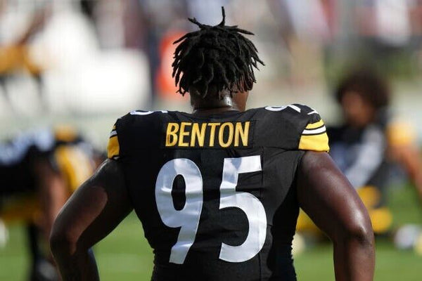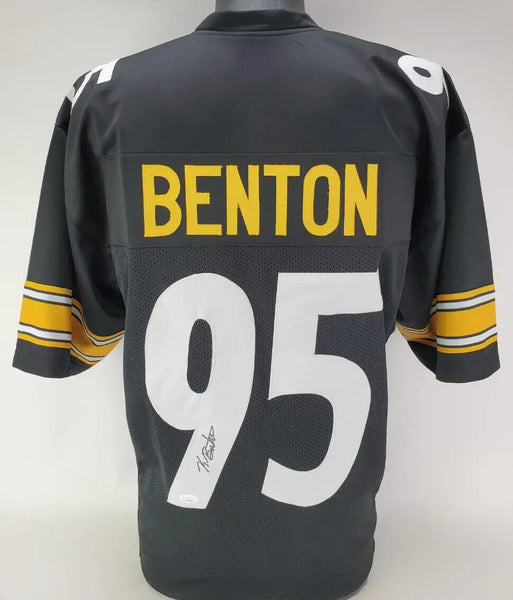This autographed Adult XL Custom on field style jersey has been personally hand-signed by Keeanu Benton of the Pittsburgh Steelers. This autograph is certified by James Spence Authentication (JSA). It comes with the numbered hologram and matching Certificate of Authenticity.Custom on-field style jerseys are a more affordable option for autograph seekers. These jerseys do not have any brand name or tags and are made in the Philippines. They feature stitched on names and numbers and are made to look very similar to the on-field jerseys that the players wear. These custom jerseys are very commonly used in the memorabilia industry.