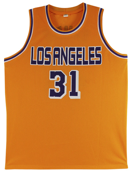 This Autographed Yellow Pro Style Jersey has been Personally Signed by Kurt Rambis of the Los Angeles Lakers. This item is 100% Authentic to include a hologram by Beckett Authentication Services. This item may come with the new Beckett Authentication hologram that has a scannable QR code rather than the traditional COA. If you would like to have a COA, you are welcome to reach out to Beckett for a printed certification once you receive your item. This is a BAS Witnessed Protection Program item which means a Beckett Authentication Service representative was present when this item was being signed. We conducted an autograph signing with Kurt Rambis where multiples of the same item were signed. While the photographs are representative of this item, the size, placement and strength of the signature may vary. Each item is hand signed, therefore, each autograph is unique. This item can be verified through BAS Witnessed. This is a X-Large sized, non-branded, custom-stitched Jersey.
