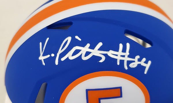 This is a Florida Gators Flat Matte Blue Speed Mini Helmet that has been hand signed by Kyle Pitts. This item has been certified authentic by Beckett Authentication (BAS) and comes with their serial numbered sticker and matching certificate of authenticity.