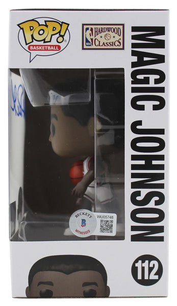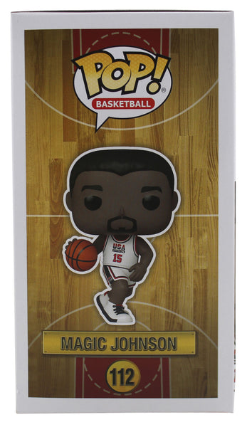 This Autographed w/ Blue Signature USA Basketball #112 Funko Pop Vinyl Figure has been Personally Signed by Magic Johnson of the Los Angeles Lakers. This item is 100% Authentic to include a Certificate of Authenticity (COA) / hologram by Beckett Authentication Services. This is a BAS Witnessed Protection Program item which means a Beckett Authentication Service representative was present when this item was being signed. We conducted an autograph signing with Magic Johnson where multiples of the same item were signed. While the photographs are representative of this item, the size, placement and strength of the signature may vary. Each item is hand signed, therefore, each autograph is unique. This item can be verified through BAS Witnessed. The boxes may have some wear as the dolls were removed to ship the boxes for the signing, and are in good condition but may not be considered mint. They will ship in a Pop protector.