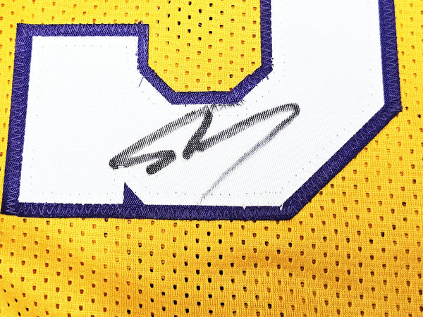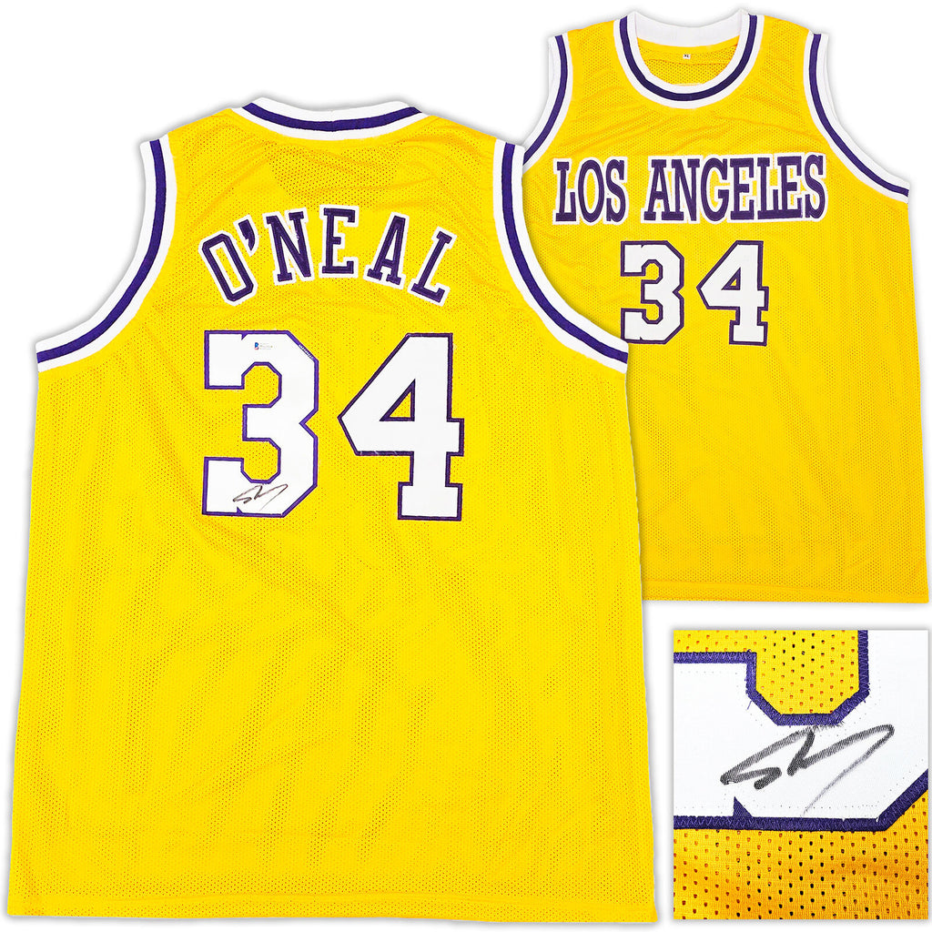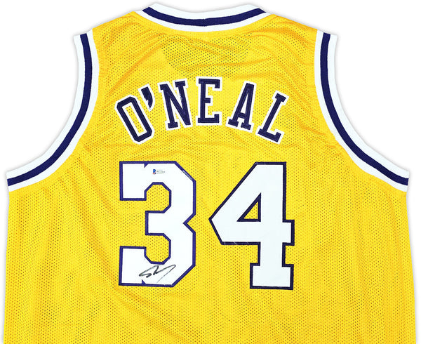 This is a Yellow Jersey that has been hand signed by Shaquille O'Neal. A?This is a custom jersey with no name brand. The approximate size is XL. It has nice sewn in name and numbers. This item has been certified authentic by Beckett (BAS) and comes with their tamper-proof sticker and matching certificate of authenticity.