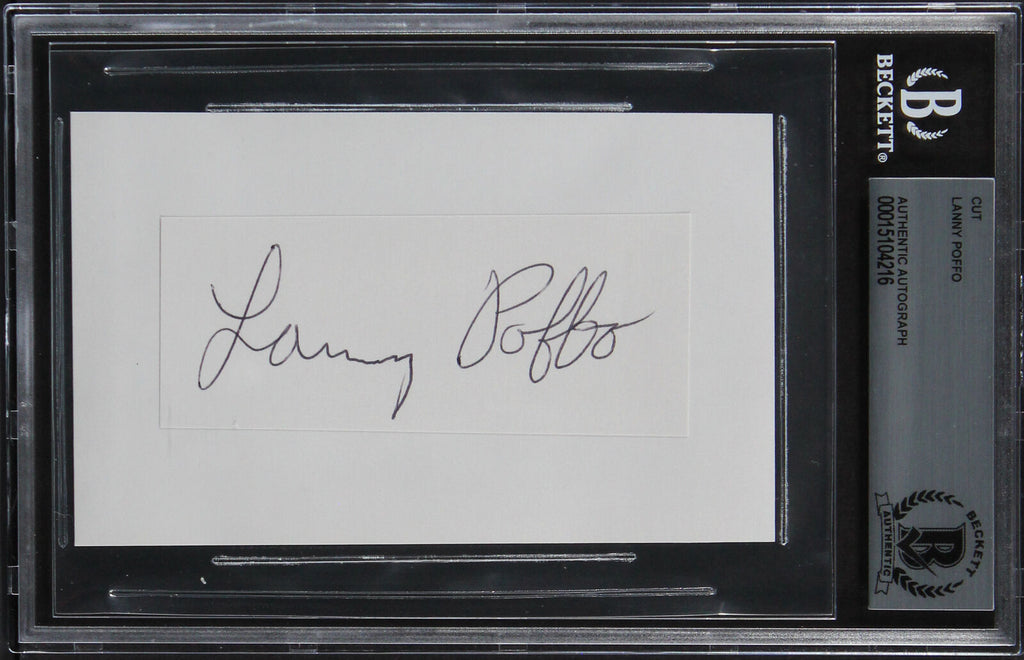 This Autographed 1.5x3.75 Cut Signature has been Personally Signed by "Leaping" Lanny Poffo. This item is 100% Authentic, it comes slabbed and authenticated by Beckett Authentication Services. The authenticity can be verified on Beckett Authentication Services website.