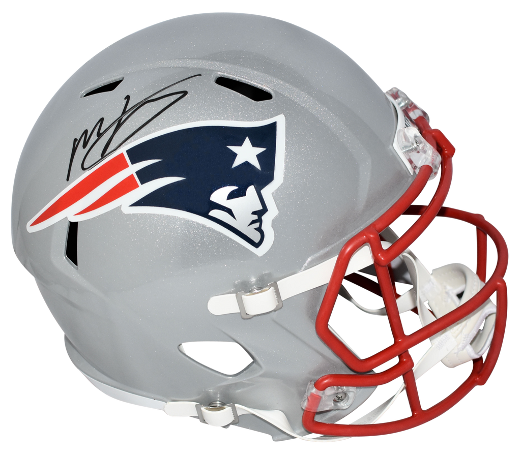Mac Jones, quarterback for the New England Patriots, has hand signed this Patriots Riddell Speed full-size replica helmet at a private signing. This item is authenticated by Beckett Authentication Services and was signed in the presence of one of their representatives. Their tamper-evident hologram featuring a QR code and serial number is on the item. The authenticity can be verified online by entering the serial number or scanning the QR code.Item pictured may not be the exact item you will receive. It will be similar quality, and we guarantee your satisfaction.