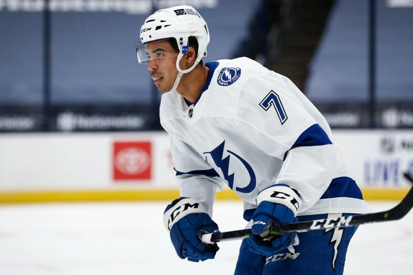 Custom on-ice style jersey. Everything is sewn on, size XL. Hand-signed and inscribed by Mathieu Joseph.The autograph includes an official PSA/DNA hologram for authenticity purposes. The signing of this item was witnessed by PSA.Authentication: PSA Hologram