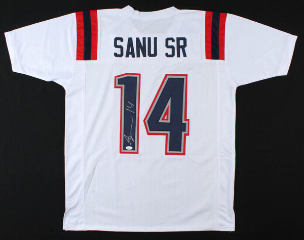 Custom on-field style jersey. Everything is sewn on, size XL. Hand-signed in black felt-tip pen by Mohamed Sanu. The lot / autograph(s) includes an official James Spence Authentication (JSA) hologram and matching COA for authenticity purposes. The signing of this item was witnessed by JSA.Authentication: JSA COA Shop our ebay store / Friendly Confines Collectibles for thousands of different autographed jerseys
