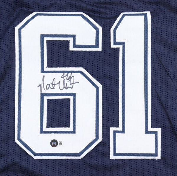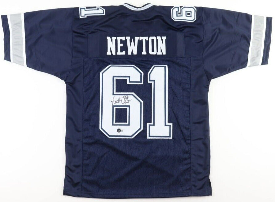 Custom on-field style Jersey is size XL, everything is sewn on, and has been hand-signed by Nate Newton.The autograph includes an official Beckett Authentication Services serially numbered hologram for authenticity purposes. The signing of this item was witnessed by Beckett.Authentication: Beckett Hologram