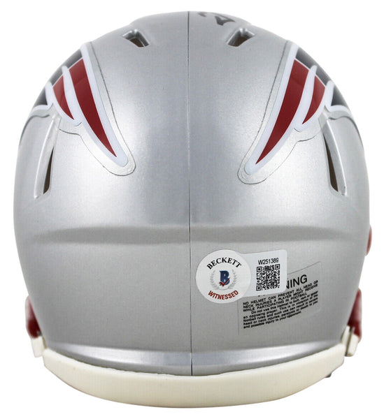 This Autographed Speed Mini Helmet has been Personally Signed by Tedy Bruschi of the New England Patriots. This item is 100% Authentic to include a hologram by Beckett Authentication Services. This item will come with an affixed Beckett Authentication Services (BAS) authentication sticker, which includes a scannable QR code to verify authenticity. Please note that Beckett no longer provides serial-numbered COA cards, and the attached BAS sticker will serve as the complete authentication for this item. This is a BAS Witnessed Protection Program item which means a Beckett Authentication Service representative was present when this item was being signed. We conducted an autograph signing with Tedy Bruschi where multiples of the same item were signed. While the photographs are representative of this item, the size, placement and strength of the signature may vary. Each item is hand signed, therefore, each autograph is unique. This item can be verified through BAS Witnessed.