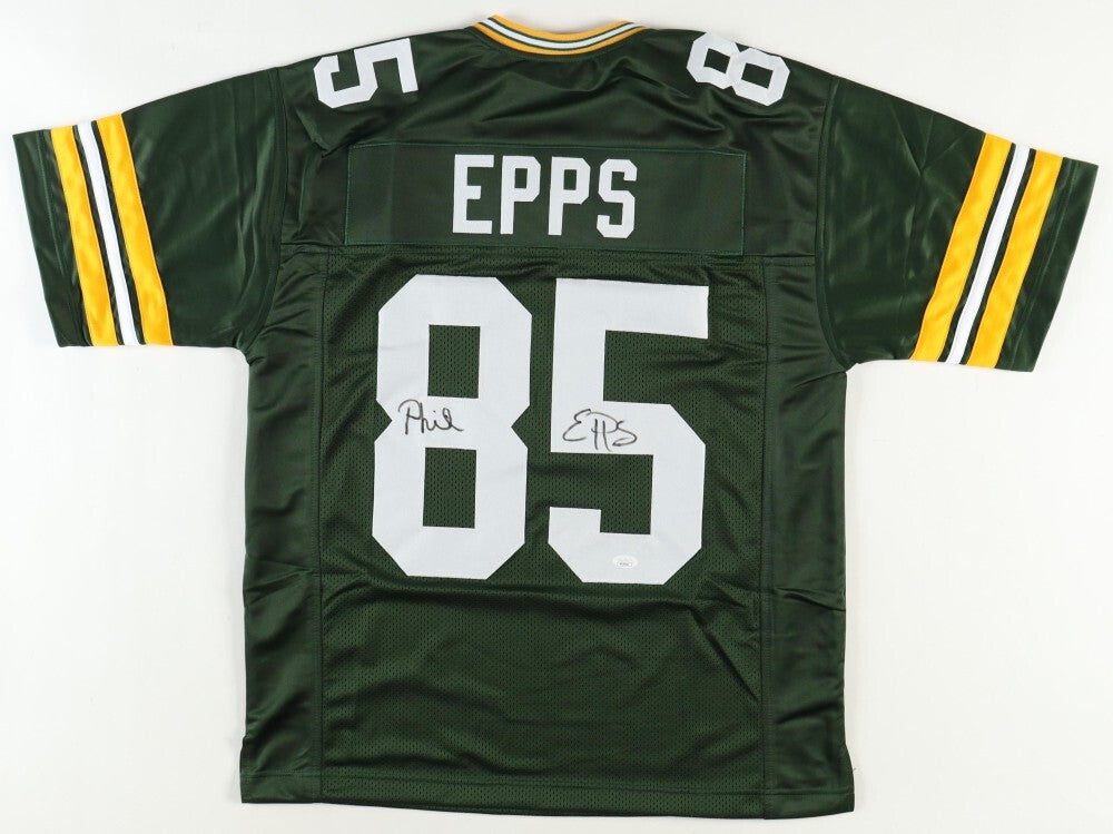 Custom on-field style jersey. Everything sewn on, size adult Large. Hand-signed in black felt-tip pen by Phil Epps. The lot / autograph(s) includes an official James Spence Authentication (JSA) hologram and matching COA for authenticity purposes. Authentication: JSA COA