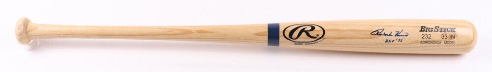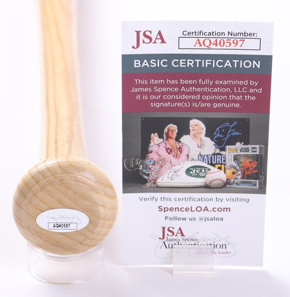Rawlings Big Stick baseball bat has been hand-signed and inscribed by Ralph Kiner (D. 2014, Pittsburgh Pirates, HOF). Please note there is left over pieces of a sticker on the backside of the barrell.The autograph(s) includes an official James Spence Authentication (JSA) hologram and matching COA for authenticity purposes.Authentication: JSA COA