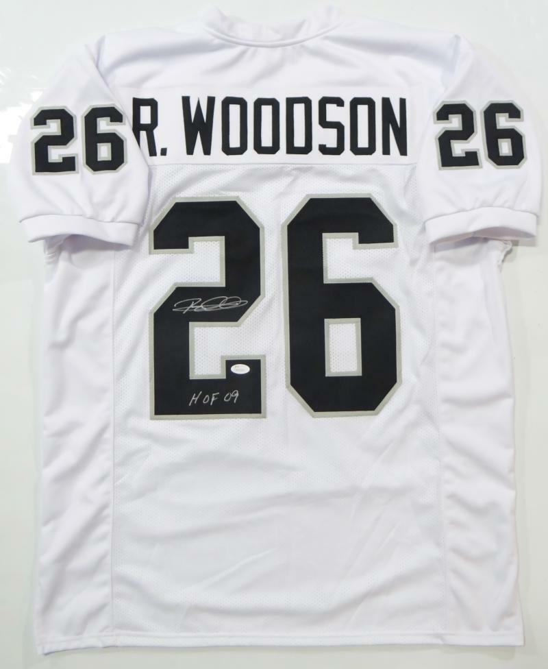 Rod Woodson Autographed White Pro Style Jersey w/ HOF- JSA Witness Auth *2 THIS IS NOT AN NFL JERSEY. THIS HAS NO TAGS, NO LOGOS, NO EMBLEMS. This is a Hand Autograph of Rod Woodson with HOF inscription on a custom made (Non Name Brand) authentic style jersey with stitched letters and numbers. This item has a James Spence Witness Authentication, which comes with a JSA #'ed Sticker and a Matching JSA Certificate of Authenticity. You can view this item on the SpenceLOA website, it shows when and where the item was signed. It was signed either at a public autograph appearance or a private signing. This is a stock photo of the item. Although you may not receive this exact item, the item you receive is virtually identical and brand new in great shape. Jersey size is XL.