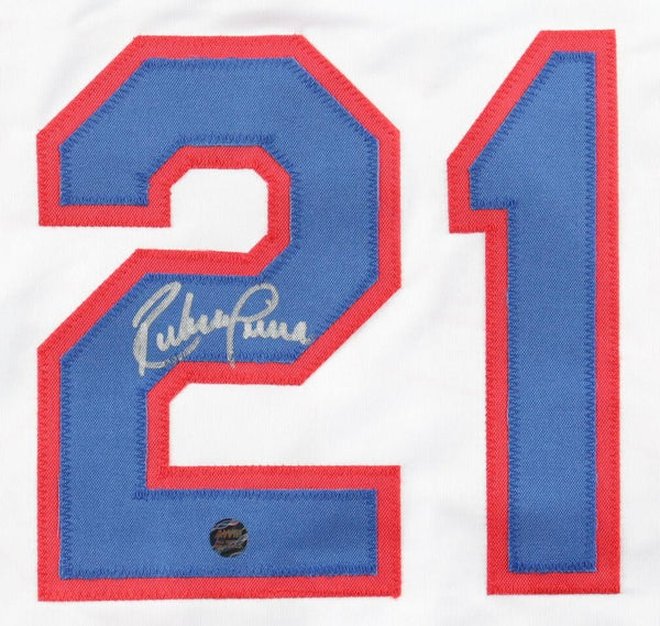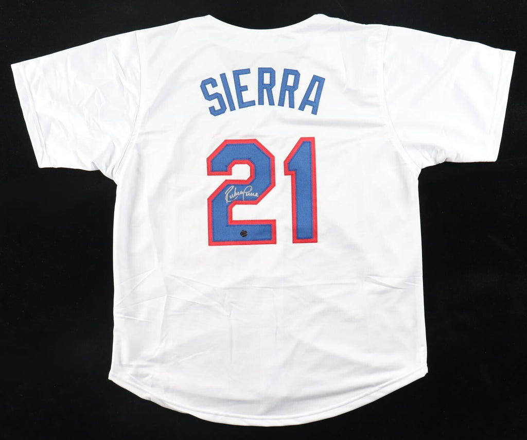 Custom on-field style jersey. Everything is sewn on, size XL. Hand-signed in silver paint pen by Ruben Sierra. The lot / autograph(s) includes an official All World Memorabilia hologram for authenticity purposes.Authentication: All World Memorabilia Hologram