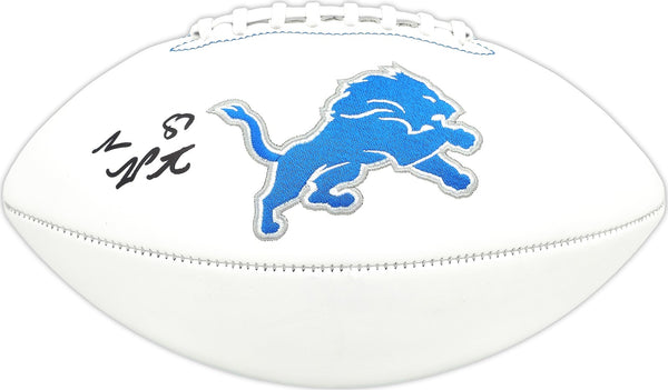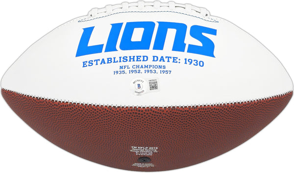 This is a Detroit Lions White Logo Football that has been hand signed by Sam LaPorta. This item has been witnessed and certified authentic by Beckett Authentication (BAS) and comes with their tamper-proof witness sticker.