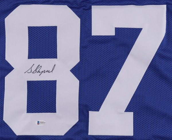 Custom on-field style jersey. Everything is sewn on, size XL. Has been hand-signed by Sterling Shepard.The lot / autograph(s) includes an official Beckett Authentication Services serially numbered hologram and matching COA for authenticity purposes. The signing of this item was witnessed by Beckett.Authentication: Beckett COA