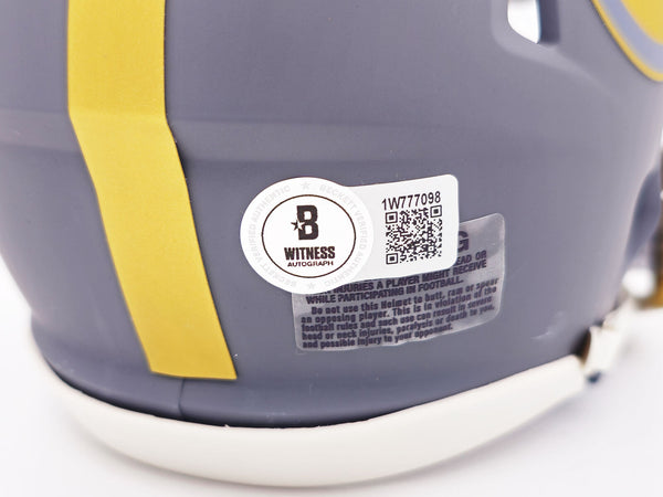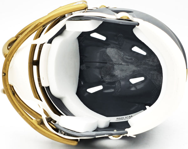 This is a Pittsburgh Steelers Slate Gray Speed Mini Helmet that has been hand signed by Terry Bradshaw. This item has been witnessed and certified authentic by Beckett Authentication (BAS) and comes with their tamper-proof witness sticker.