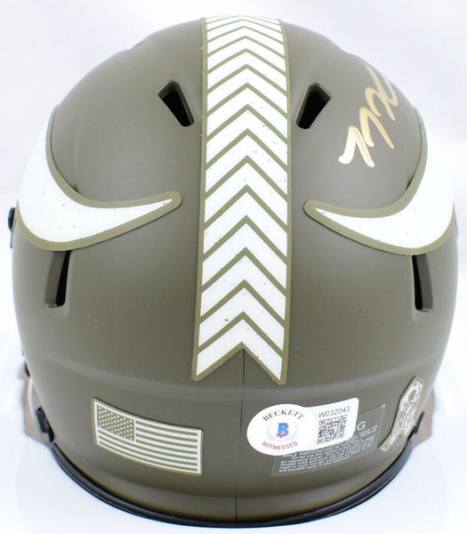 TJ Hockenson Signed Vikings Salute to Service Speed Mini Helmet- Beckett W Holo
