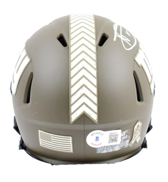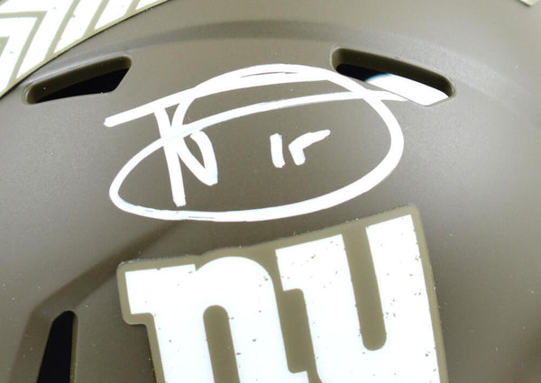 Tommy DeVito Autographed New York Giants Salute to Service Speed Mini Helmet-Beckett W Hologram *White This is a hand autographed helmet of Tommy DeVito of the New York Giants. This is a Riddell Football Salute to Service Speed Mini Helmet. This item has a Beckett Witnessed Authentication, which comes with a numbered hologram and a QR code for verification. You can view this item on the Beckett Authentication website and it shows when and where the item was signed. It was signed either at a public autograph appearance or a private signing. This is a stock photo of the item. Although you may not receive this exact item, the item you receive is virtually identical and brand new in great shape.
