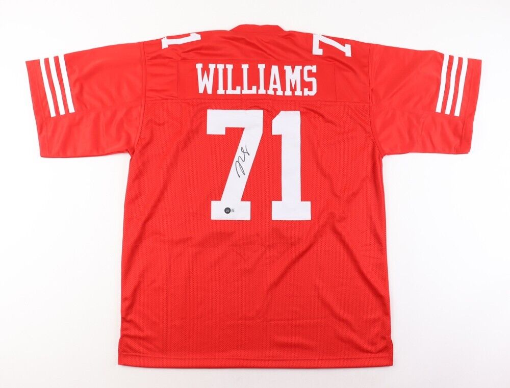 All Items are brand new unless otherwise stated. On all signed jerseys up for auction stock images are used in these lCustom on-field style jersey with everything is sewn on, size XL. Hand-signed in black felt-tip pen by Trent Williams (Washington Redskins, San Francisco 49ers).The autograph includes an official Beckett Authentication Services serially numbered hologram and QR Code Card for authenticity purposes. The signing of this item was witnessed by Beckett.Authentication: Beckett Hologram with QR Code CardAll Items are brand new unless otherwise stated. On all signed jerseys up for auction stock images are used in these photos, the exact jersey you receive will be of equal value. ALMOST ALL OUR SIGNED JERSEYS ARE ADULT XL unless otherwise noted (It's the preferred size for autograph collectors for display purposes) The exact item you will receive will be the Same player as the one pictured, but may have the signature in different spots, be signed in a different color paint pen, and have different inscriptions than the photo shown. WE ARE NOT A WHOLESALER; WE TRY TO OFFER LOW PRICED SIGNED JERSEYS TO OUR CUSTOMERS SO EVERYONE GETS A FAIR CHANCE AT LOW PRICES ON QUALITY ITEMS. If you're buying multiple items, please don't pay until you purchase all your auction items for that week (Thursday thru Sunday) We'll send you an invoice when all our weekly auctions are over on either Saturday or Sunday evening at 10:30 pm depending on how many items we have listed that week. We will adjust your shipping at this point. We use a Pack & Ship to send out our Auction items and they charge us $13. for the 1st item & $3. for each additional. Thank you & Happy BiddingALL INTERNATIONAL SHIPPING ON THESE ITEMS IS DONE THROUGH THE Ebay GLOBAL SHIPPING PROGRAM. PLEASE BE AWARE OF THESE COSTS BEFORE BIDDING.Custom on-court style jerseys are a more affordable option for autograph seekers. These jerseys do not have any brand name or tags and are made in the Philippines. They feature stitched on names and numbers and are made to look very similar to the on-field jerseys that the players wear. These custom jerseys are very commonly used in the memorabilia industry.