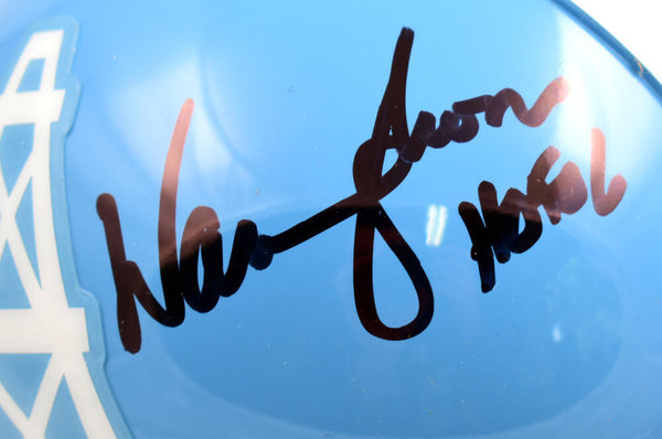 Warren Moon Autographed Houston Oilers 60-62 Mini Helmet w/HOF - Beckett W Hologram *Black This is a hand autograph of Warren Moon of the Houston Oilers on a Riddell Football 60-62 Mini Helmet and inscribed with HOF 06. This item has a Beckett Witnessed Authentication, which comes with a numbered hologram and a QR code for verification. You can view this item on the Beckett Authentication website and it shows when and where the item was signed. It was signed either at a public autograph appearance or a private signing. This is a stock photo of the item. Although you may not receive this exact item, the item you receive is virtually identical and brand new in great shape.