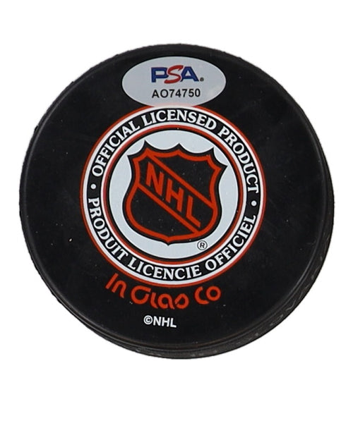 Montreal Canadiens Logo Hockey Puck. Hand-signed and inscribed 12 in silver paint pen by Yvan Cournoyer (HOF). The autograph(s) includes an official PSA/DNA hologram and QR Code card for authenticity purposes.Authentication: PSA Hologram with QR Code card