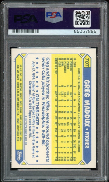 1987 Topps Traded #70T Greg Maddux Cubs On Card PSA/DNA Auto GEM MINT 10
