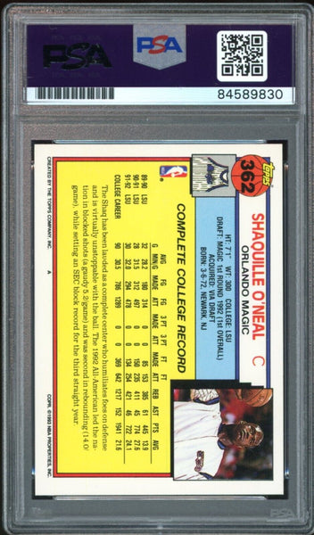 1992 Topps #362 Shaquille O'Neal RC Rookie Magic PSA/DNA Auto GEM MINT 10