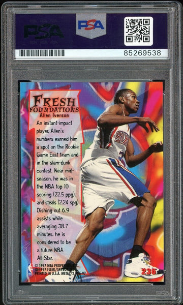 1996 Fleer Metal #236 Allen Iverson RC Rookie 76ers PSA/DNA Auto GEM MINT 10