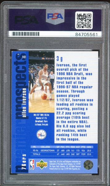 1996 SP #141 Allen Iverson RC Rookie On Card Blue Ink PSA/DNA Auto GEM MINT 10