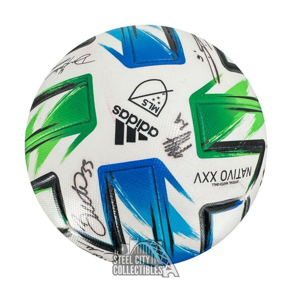 This 2020 Colorado Rapids team signed and matched used soccer ball comes authenticated by Beckett and Fanatics. L. Abubakar, J. Kelly, A. Rawls, C. Warner, S. Beitashour, D. Moor, K. Ford, S. Vines, N. Mezquida, A. Shinyashiki, J. Lewis, N. Benezet, D. Rubio, W. Yarbrough, J. Price, C. Bassett, C. Irwin, Y. Namli.