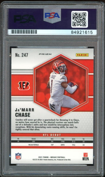 2021 Panini Mosaic Prizm #247 Ja'Marr Chase RC On Card PSA/DNA Auto GEM MINT 10