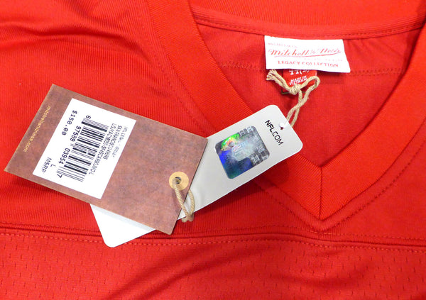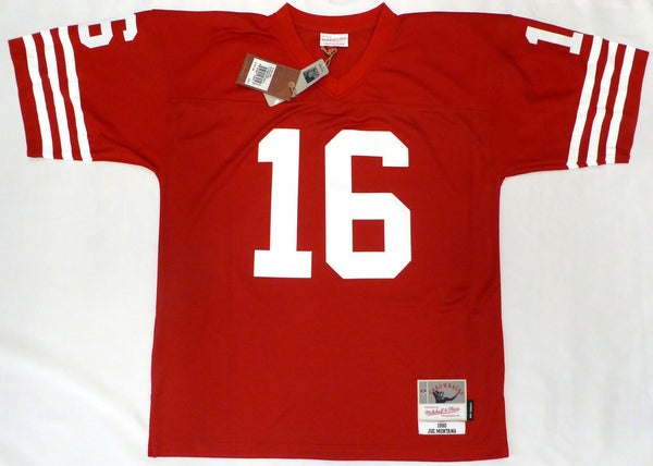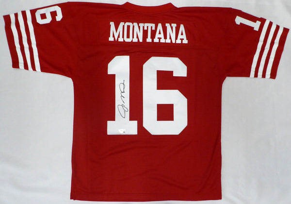 This is a Red Authentic Mitchell & Ness San Francisco 49ers Jersey that has been hand signed by Joe Montana. This jersey is Size 44. This item has been certified authentic by Fanatics and comes with their tamper-proof sticker.