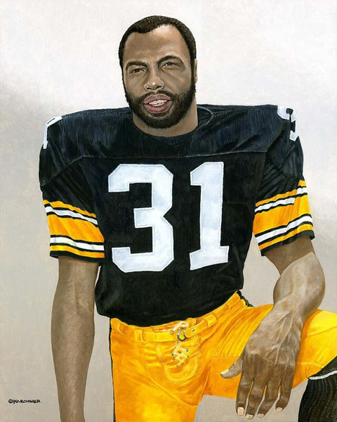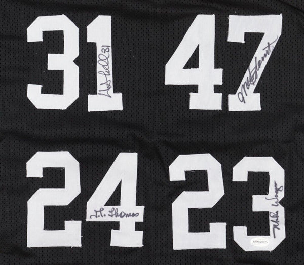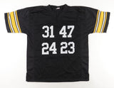 Custom on-field style jersey. Everything is sewn on, size XL. Hand-signed in black felt tip pen by (4) including Mel Blount (HOF), Donnie Shell, J. T. Thomas and Mike Wagner.The lot / autograph(s) includes an official Total Sports Enterprises (TSE) hologram and matching COA for authenticity purposes.Authentication: Total Sports Enterprises COA