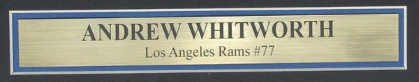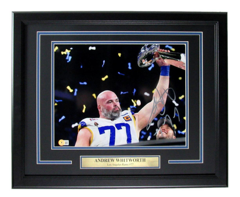 Andrew Whitworth Autographed 11x14 Photo Los Angeles Rams Framed. The outer frame size is 18 inches x 22 inches. This photo is authenticated by BAS/Beckett and includes their Tamper-proof Hologram Sticker.
