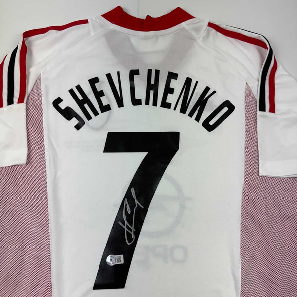 Autographed/Signed Andriy Shevchenko AC Milan White Soccer Futbol Jersey BAS COA This item is simply authentic and comes with a trusted third party authentication.