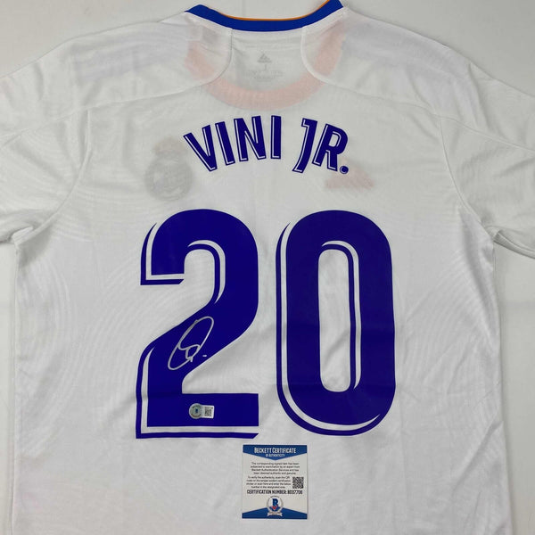 Autographed/Signed Vini Vinicius Jr. Real Madrid White Soccer Jersey Beckett COA