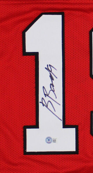A Georgia Custom Red Jersey hand signed by Brock Bowers. The item and signature are in excellent condition. Brock Bowers is a tight end and was a first round draft pick in 2024. He also won two national championships with the Georgia Bulldogs. AUTHENTICATION: The item is accompanied by a Beckett Serial Numbered and Databased Hologram.