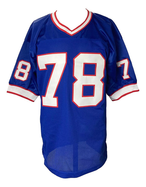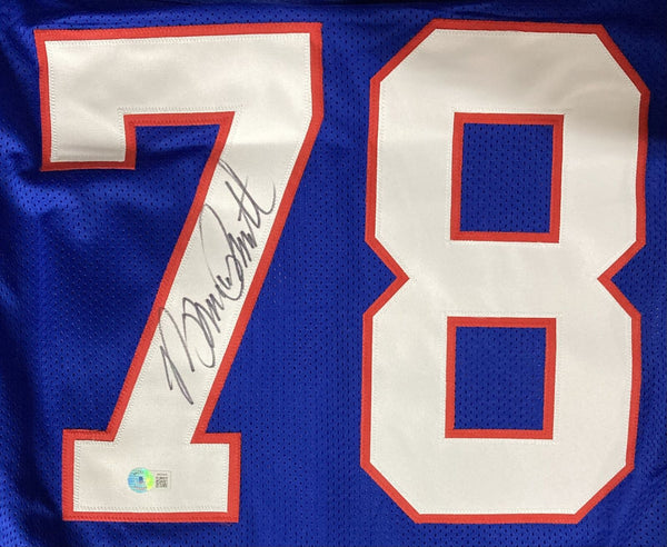 Featured is a Bruce Smith signed custom football jersey. This jersey has been hand signed by Smith and comes with the Beckett witnessed hologram and certificate of authenticity. This jersey features professionally sewn letters and numbers and is size XL. This jersey has no team tags or emblems and is intended as a sports collectible. This jersey would make a great addition to any sports memorabilia collection! SPECIFICATIONS Autographed By: Bruce Smith Team: Buffalo Bills Sport: Football Authentication: Beckett Grading Services