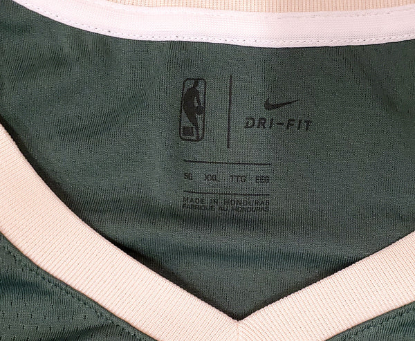 This is a Green Nike Milwaukee Bucks Jersey that has been hand signed by Giannis Antetokounmpo. This jersey is Size XXL. This item has been certified authentic by Beckett Authentication (BAS) and comes with their tamper-proof sticker and matching certificate of authenticity.