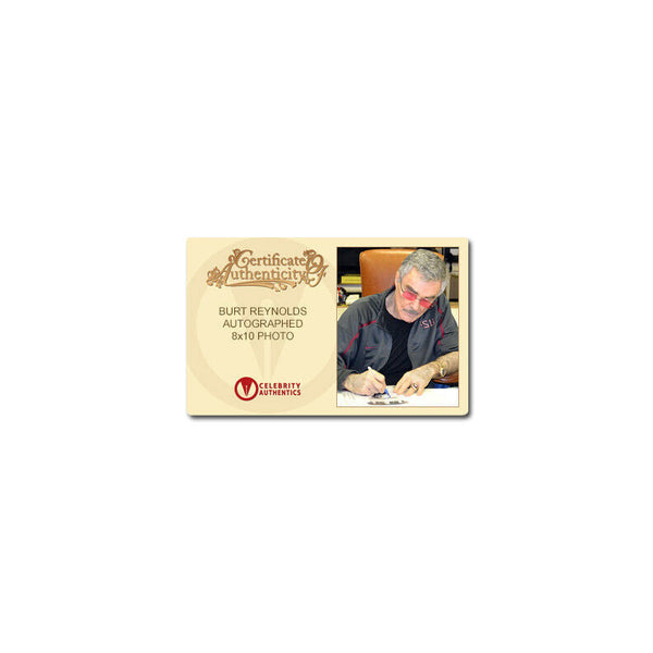 This 8x10 photo from The Longest Yard of film legend Burt Reynolds has been personally hand-signed by Burt during his autograph signing with Celebrity Authentics. Burt portrayed Paul Crewe a.k.a. "The Mean Machine" in this 1974 film. Item ships affixed with the Celebrity Authentics serial-numbered and tamper evident Authentication Hologram and includes Celebrity Authentics Certificate of Authenticity featuring picture of Burt signing photo. Please note: with multiples signed by the actor, a sample photo is used from stock to represent what you will receive. Exact autograph size and placement may vary.