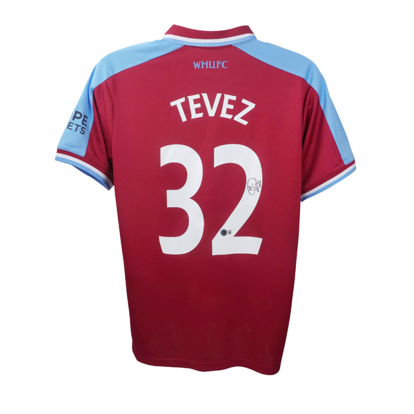 Carlos Tevez Signed West Ham Home Soccer Jersey #32 with Beckett Witness