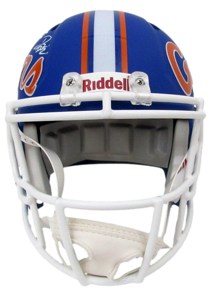 D. J. Lagway Signed/Inscribed "Chomp! Chomp!" Blue Matte Full Size Speed Replica Football Helmet Florida Gators. This helmet is authenticated by JSA and includes their tamper-proof hologram sticker with QR Code.