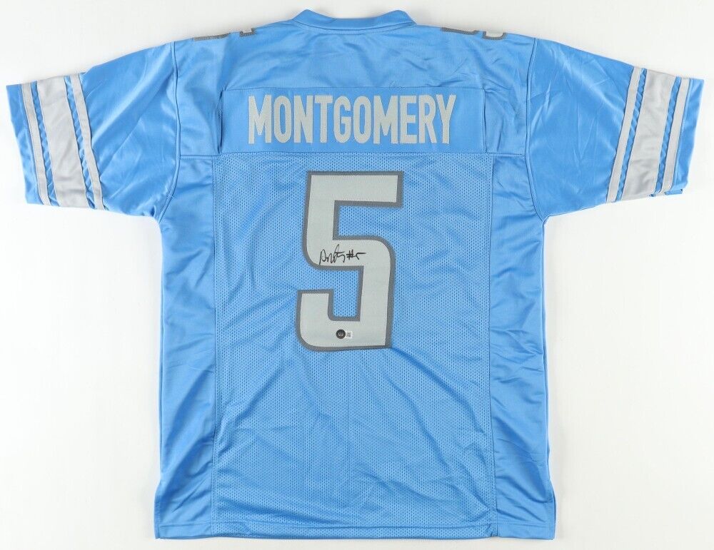 Custom jersey with everything sewn on, size XL. Hand-signed by David Montgomery.The autograph includes an official Beckett Authentication Services serially numbered hologram for authenticity purposes. The signing of this item was witnessed by Beckett.Authentication: Beckett Hologram Shop our ebay store / Friendly Confines Collectibles for thousands of different autographed jerseys