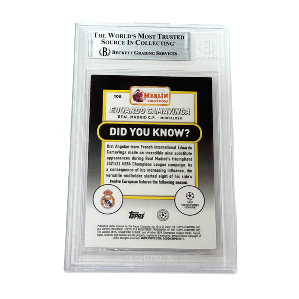 Eduardo Camavinga Signed 2023-24 Topps Merlin UCC Pink Mojo - Beckett Witness