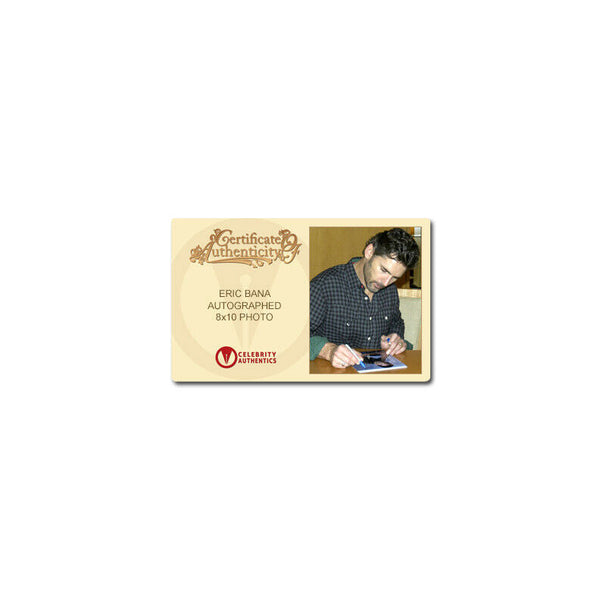 This 8x10 studio photo has been personally hand-signed by Eric Bana during his signing with Celebrity Authentics. Ships affixed with the Celebrity Authentics serial-numbered and tamper evident Authentication Hologram and includes Celebrity Authentics Certificate of Authenticity featuring picture of Eric signing photo. Please note: with multiples signed by the actor, a sample photo is used from stock to represent what you will receive. Exact autograph size and placement may vary.