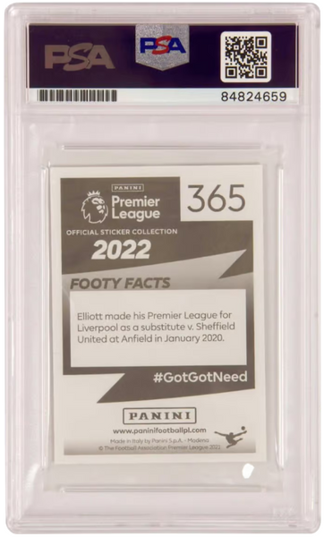Harvey Elliott Signed 2022 Panini Premier League Sticker #365 - PSA 10 Autograph